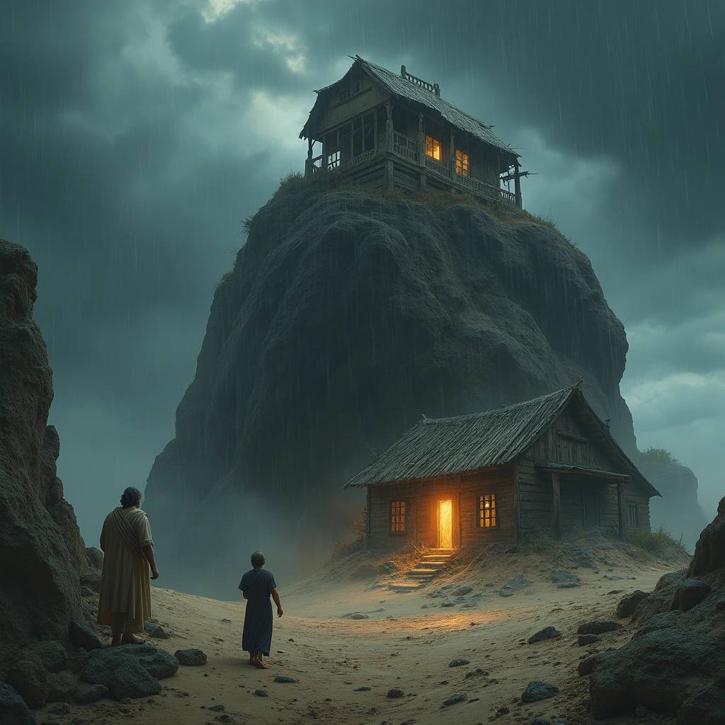 Когда Иисус завершает Свою мысль в Нагорной проповеди, Он приводит нам образ - два дома. Один построен на камне, другой на песке. На первый взгляд, оба дома могут выглядеть одинаково, но их истинная прочность проявляется, когда приходят испытания.