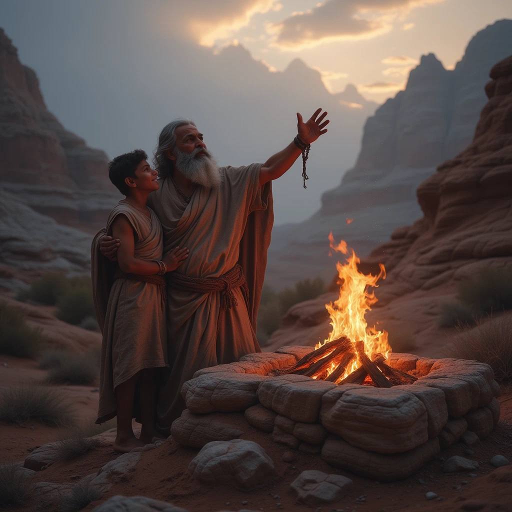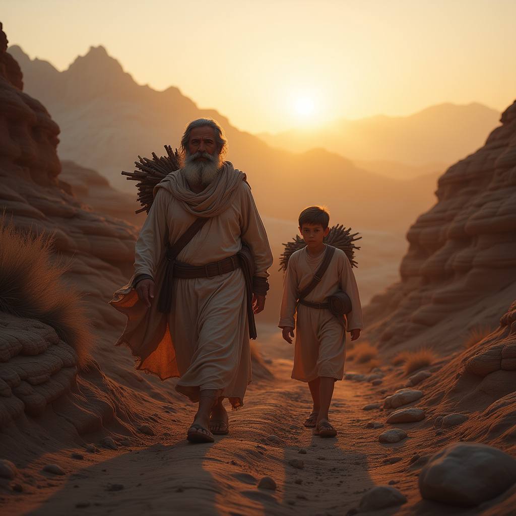Три дня пути позади. Авраам и Исаак поднялись на вершину горы Мориа. В этот момент мы видим, как вся история достигает своего предназначения. Это место, где доверие Авраама к Богу пройдет через огонь испытания, а его вера засвидетельствует глубину его любви к Господу.