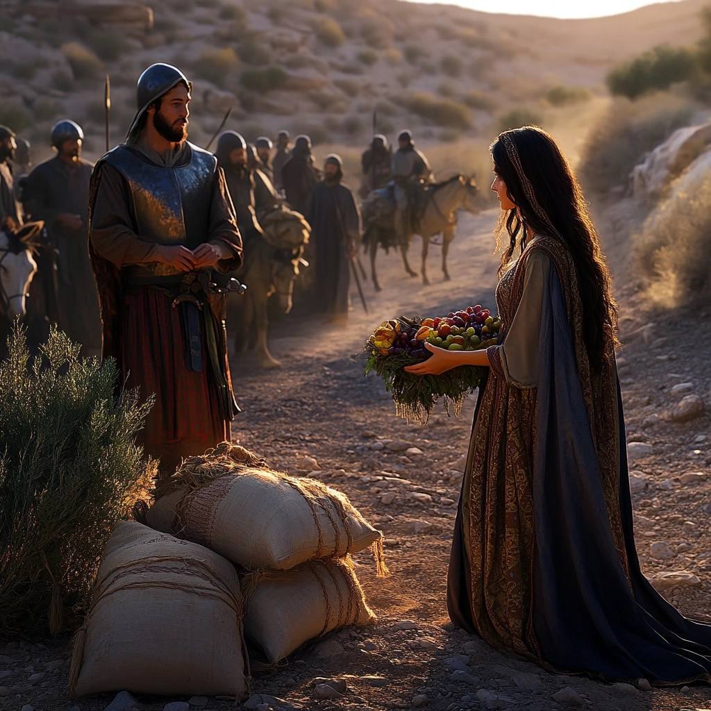 Однако Авигея, узнав об этом, быстро собрала дары и отправилась навстречу Давиду, чтобы умиротворить его и предотвратить кровопролитие. Она мудро обратилась к Давиду, напомнив ему о Божьем плане для его жизни и о том, что ему не нужно проливать невинную кровь. Её поступок не только спас её дом от уничтожения, но и укрепил Давида в его вере и призвании.