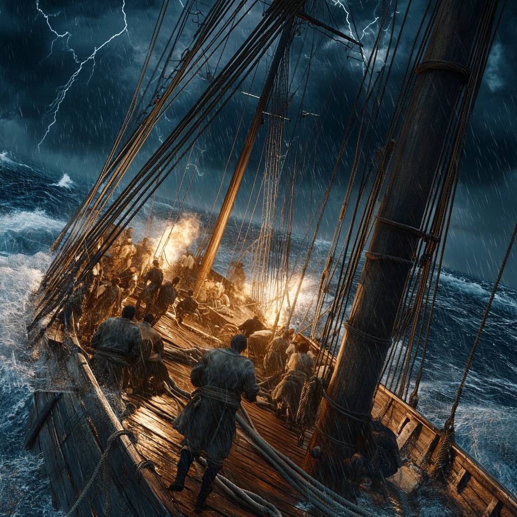 Буря в этой истории — это не просто случайное явление природы. Это проявление Божьего контроля над миром и напоминание о том, что Бог всегда действует для достижения Своего замысла. Она служит напоминанием, что когда мы пытаемся убежать от Бога, Он вмешивается в нашу жизнь, посылая определённые события, которые могут показаться неприятными или пугающими, но они призваны вернуть нас на верный путь.