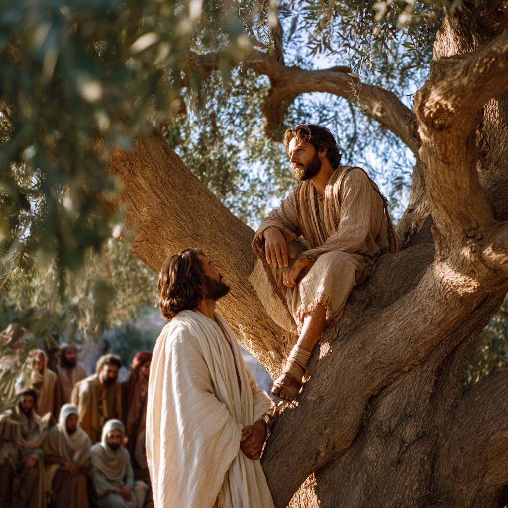 Толпа шумит. В городе большое количество людей. Иисус идёт по дороге, окружённый множеством голосов и лиц. Но вдруг... Он поднимает глаза - и говорит: «Закхей». Не «эй, ты». Не «человек на дереве». А по имени.