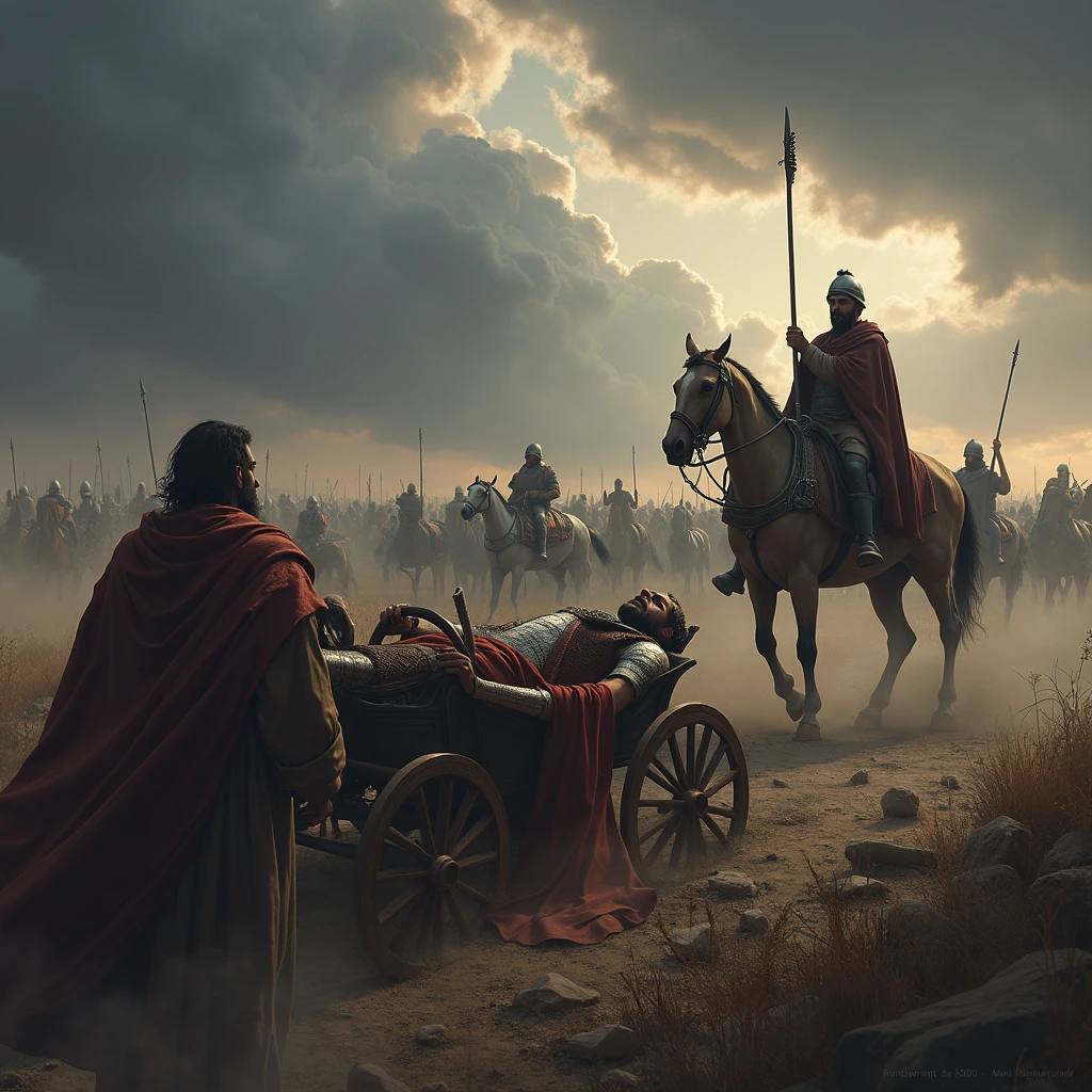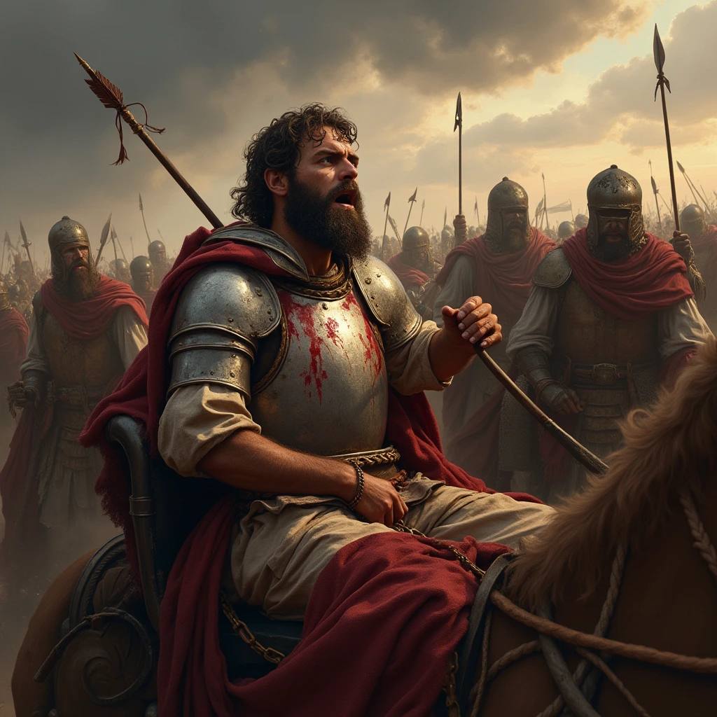 3 Царств 22:34 "А один человек случайно натянул лук и ранил царя Израильского сквозь швы лат. И сказал он своему вознице: повороти назад и вывези меня из войска, ибо я ранен."