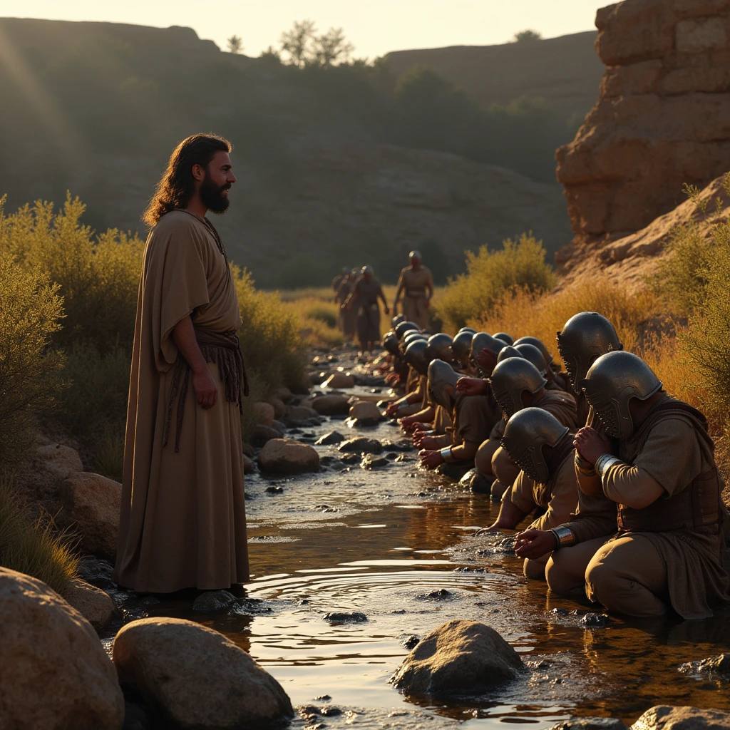 Когда настало время сразиться с Мадианитянами, Гедеон собрал армию из 32 000 человек. Однако Бог сказал Гедеону, что его войско слишком велико. Господь объяснил, что, если израильтяне победят с таким количеством солдат, они могут приписать победу своим силам, а не Богу: