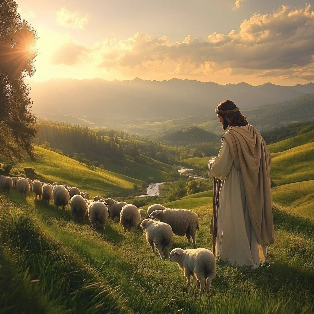 Иисус назвал Себя Добрым Пастырем, и это один из самых утешительных образов. Пастырь заботится о своих овцах, ведёт их к зелёным пастбищам и защищает их от опасностей. Он знает каждую из них по имени и готов отдать свою жизнь за их спасение. Этот образ показывает, как глубоко Иисус заботится о каждом из нас. Он ведёт нас, защищает нас и даёт нам жизнь с избытком.